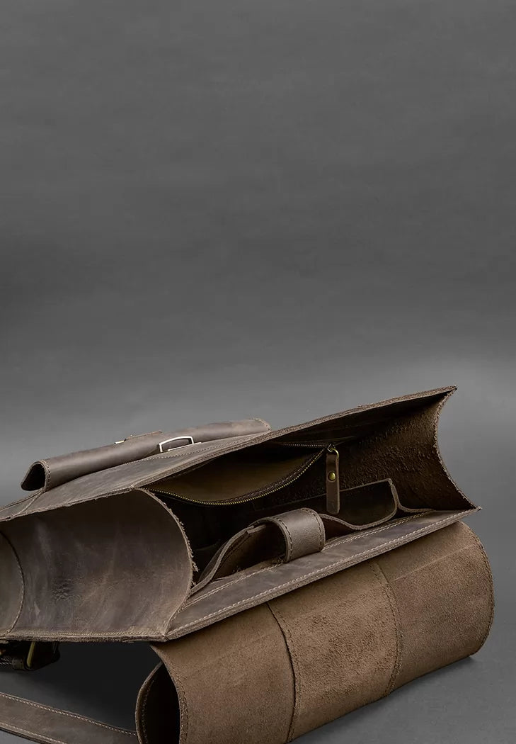 Crazy horse genuine leather backpack, fastens with belt buckles. Solid genuine leather with an aged effect allows this haberdashery accessory to fit into the trends of vintage style. You can wear it with many styles without worrying about visible signs of wear and tear. Even with intensive daily wear, marks on the surface of the skin will be perfectly camouflaged.