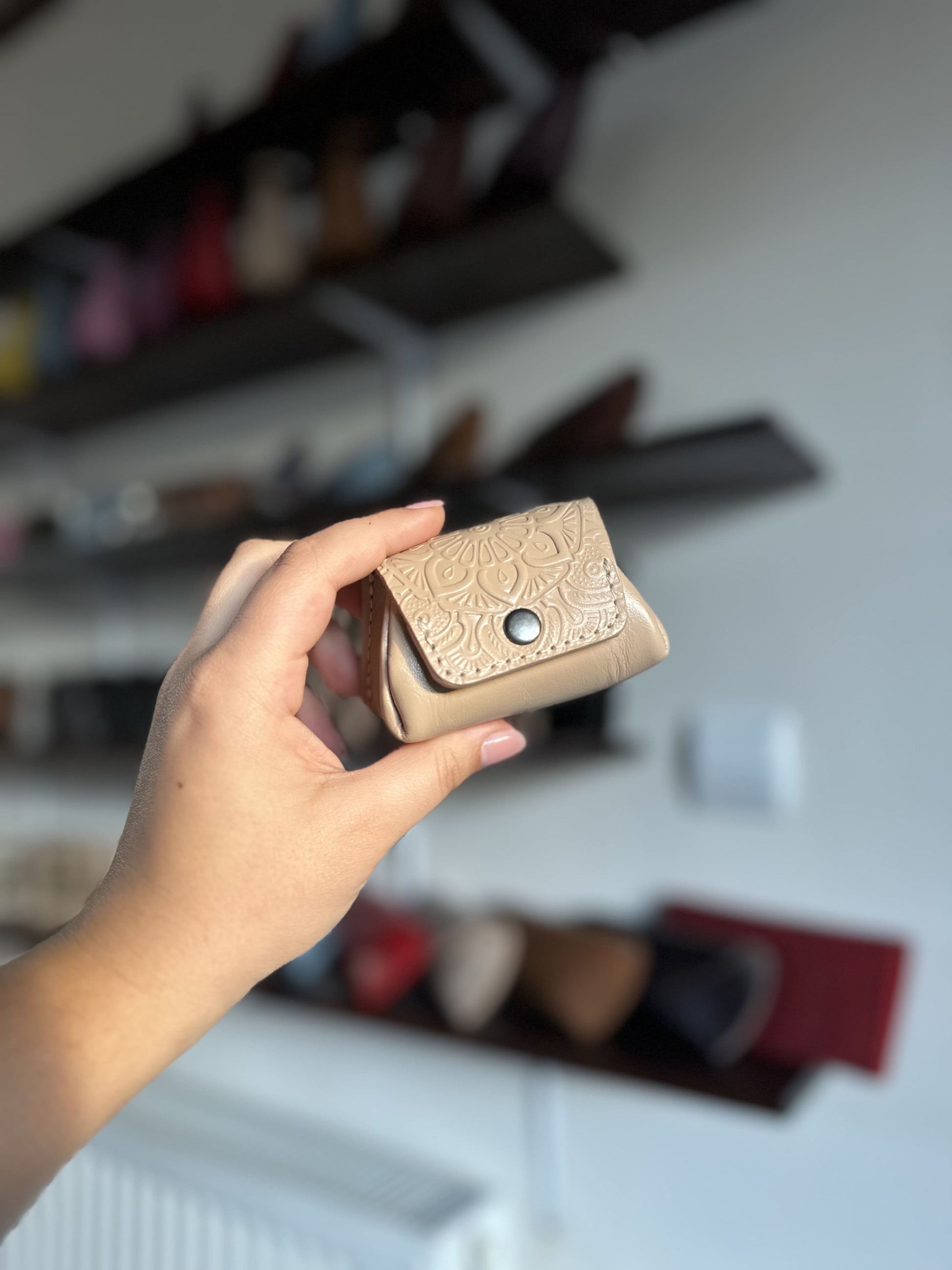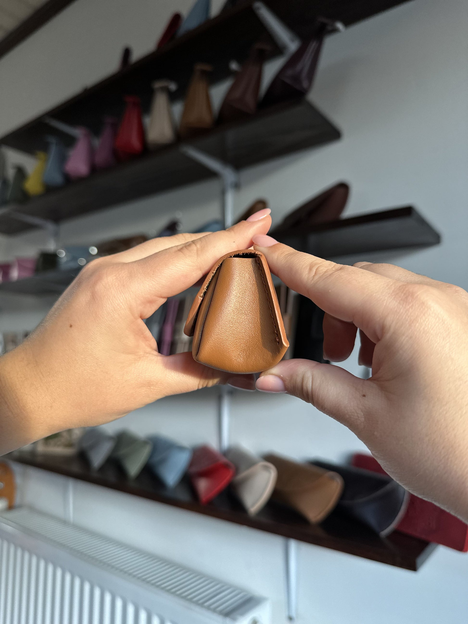 A compact but spacious leather coin box is a convenient solution for storing small change.