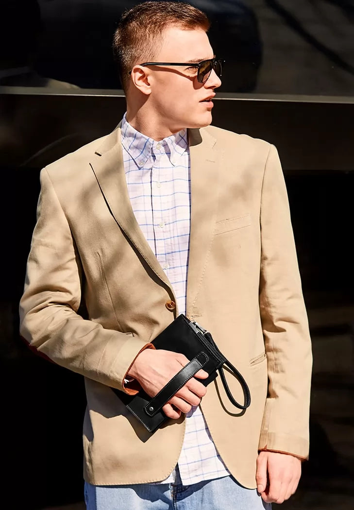 A comfortable leather clutch bag will allow you to keep all your important things at hand. It will have a place for your phone, large bills, small documents, cards, coins and other small items. There is a removable loop that allows you to wear the accessory on your wrist. There is also an additional holder on the back of the accessory.