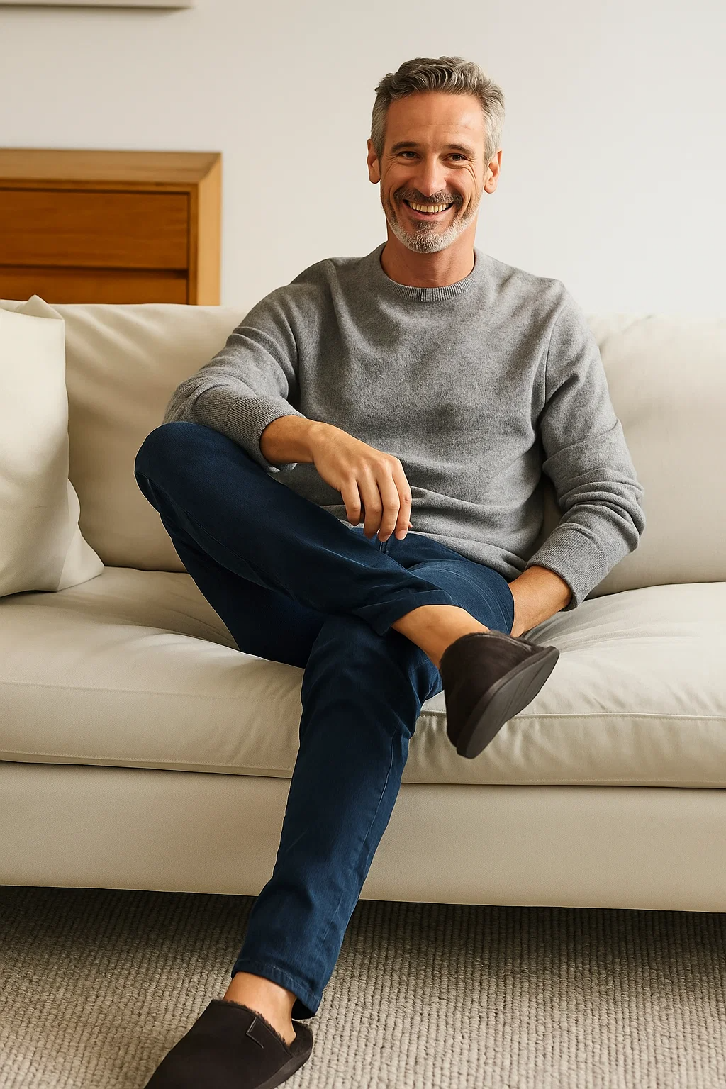 Introducing the SOAY Brown men's slippers — the perfect blend of elegance, comfort, and classic design. Handcrafted with high-quality suede and natural sheepskin, these slippers are designed to provide warmth and relaxation for your tired feet. The inside is lined with soft sheep wool, offering exceptional comfort and breathability, making them perfect for year-round wear.
