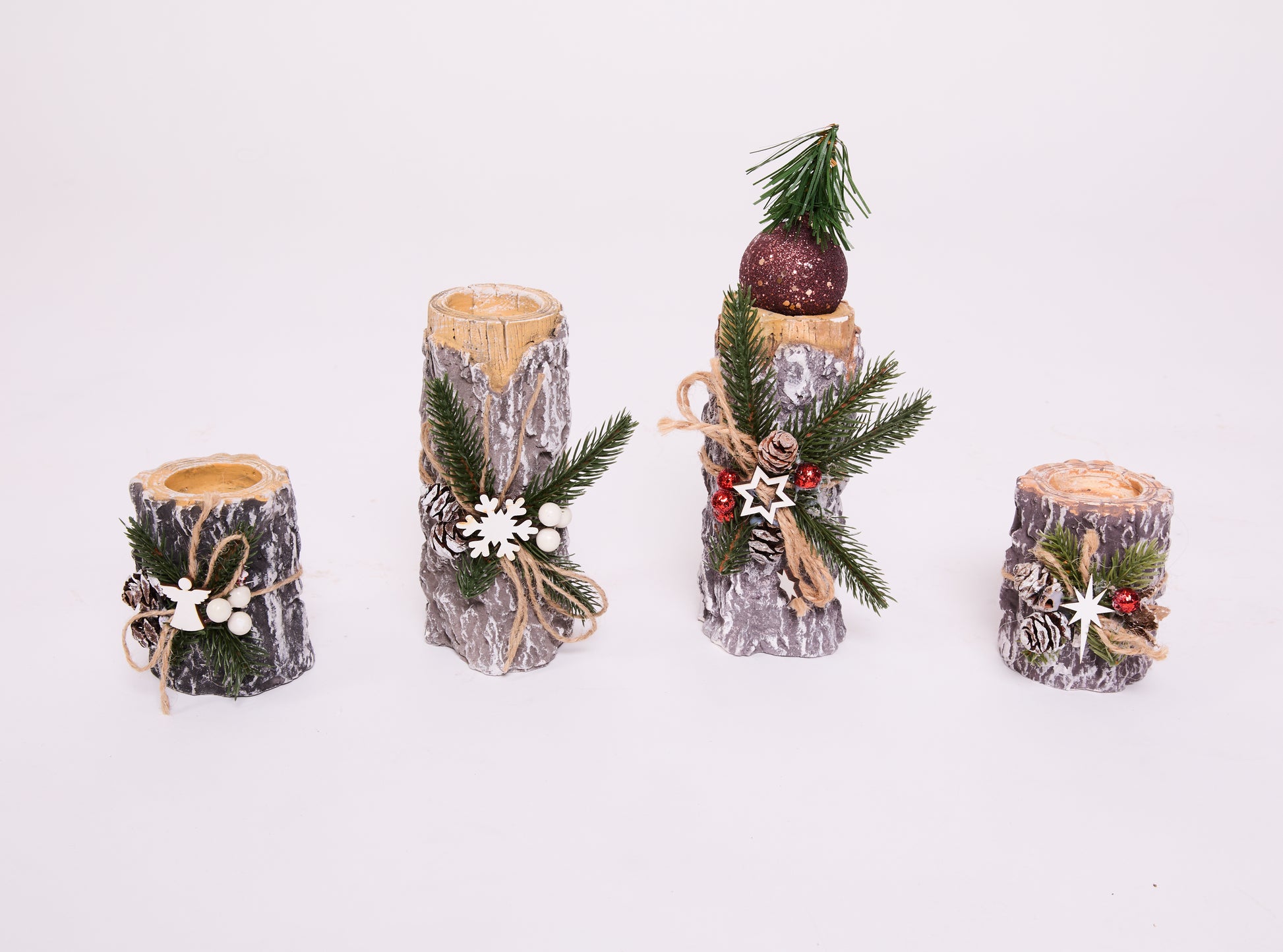 Add a warm and festive touch to your holiday décor with our rustic Christmas candle holder. Designed to resemble a natural wooden log, this tealight stand is decorated with snowy pinecones, evergreen sprigs, twine, and a touch of red sparkle for a magical Christmas look. Ideal for holding tealight or small candles, it creates a cozy and inviting atmosphere in any room. Perfect as a Christmas table centerpiece, mantel decoration, or festive accent for holiday gatherings, this candle holder combines rustic charm with seasonal elegance. It also makes a thoughtful gift for friends and family during the holidays.
