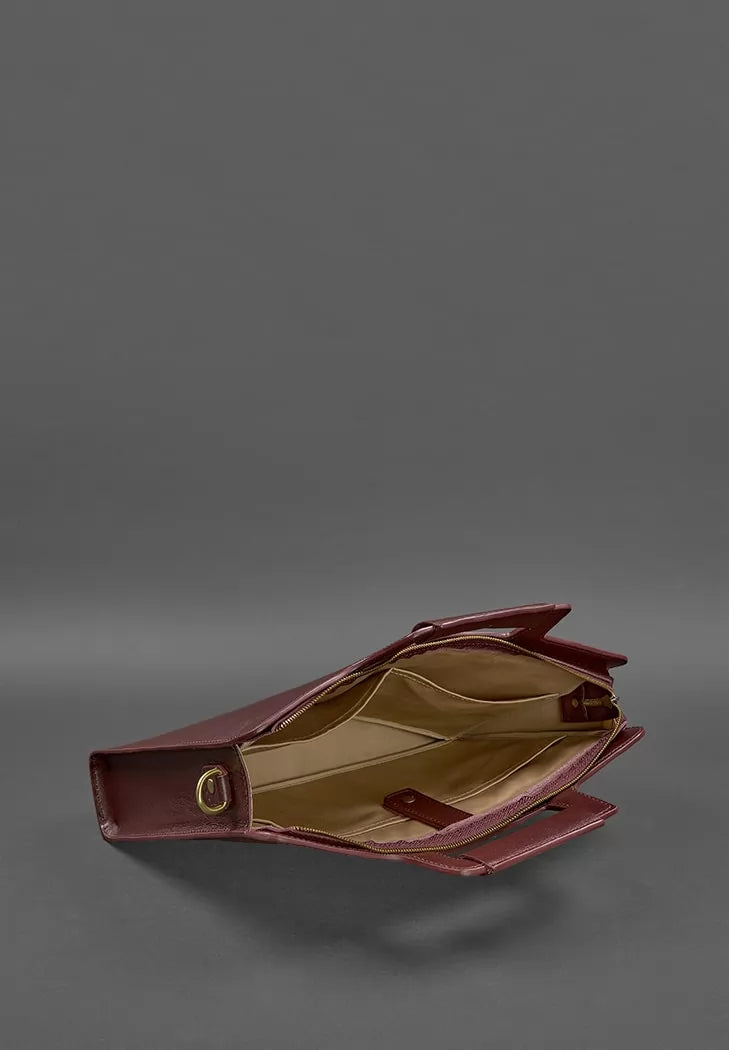 An original burgundy bag for a laptop and documents will emphasize the status and style of the owner.