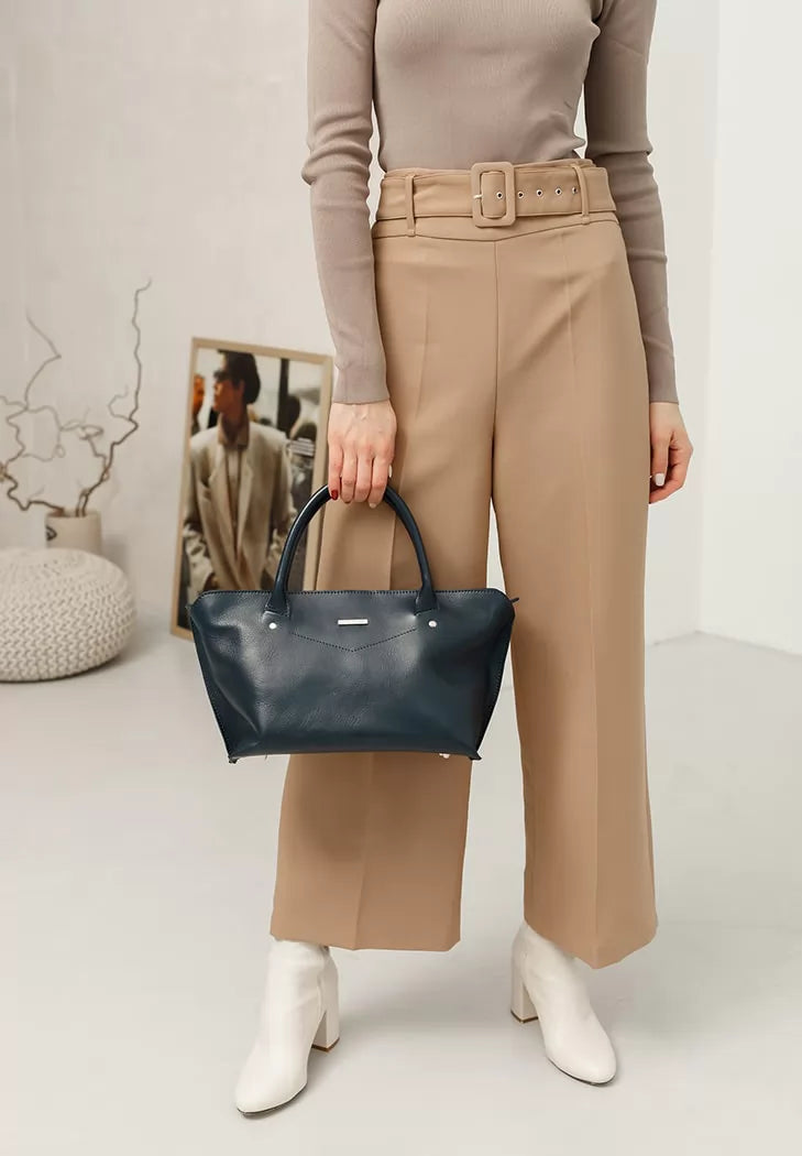 The bag looks very compact from the outside, but this does not affect its capacity. The dark blue color can be attributed to the basic colors. It fits into color combinations just as easily as black, but does not look so contrasting, making the image softer and more refined.